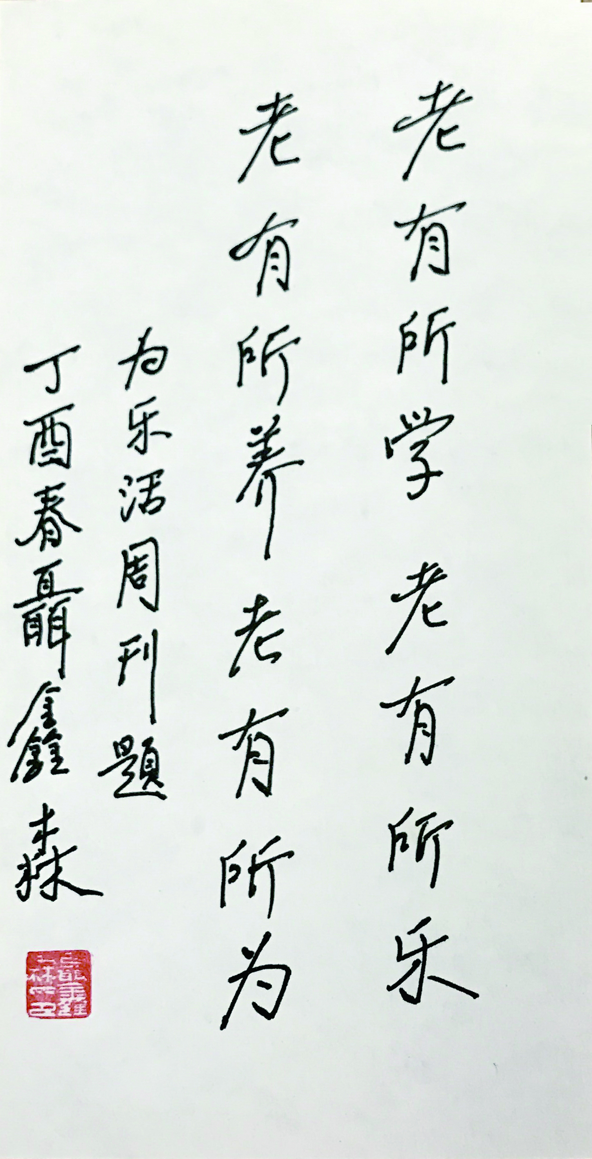 他认为,人老了是很快乐的一件事情,老有所学、老有所养、老有所乐、老有所为,欢度晚年,不是吃喝拉撒,而是对人生的体悟,是人生的体面。 (本文采写 记者 林夕)