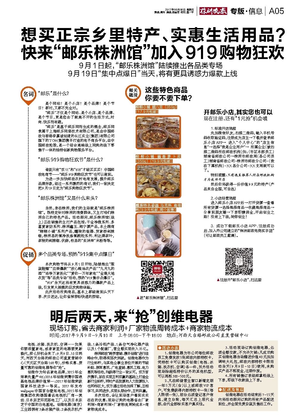 想买正宗乡里特产、实惠生活用品?快来“邮乐株洲馆”加入919购物狂欢