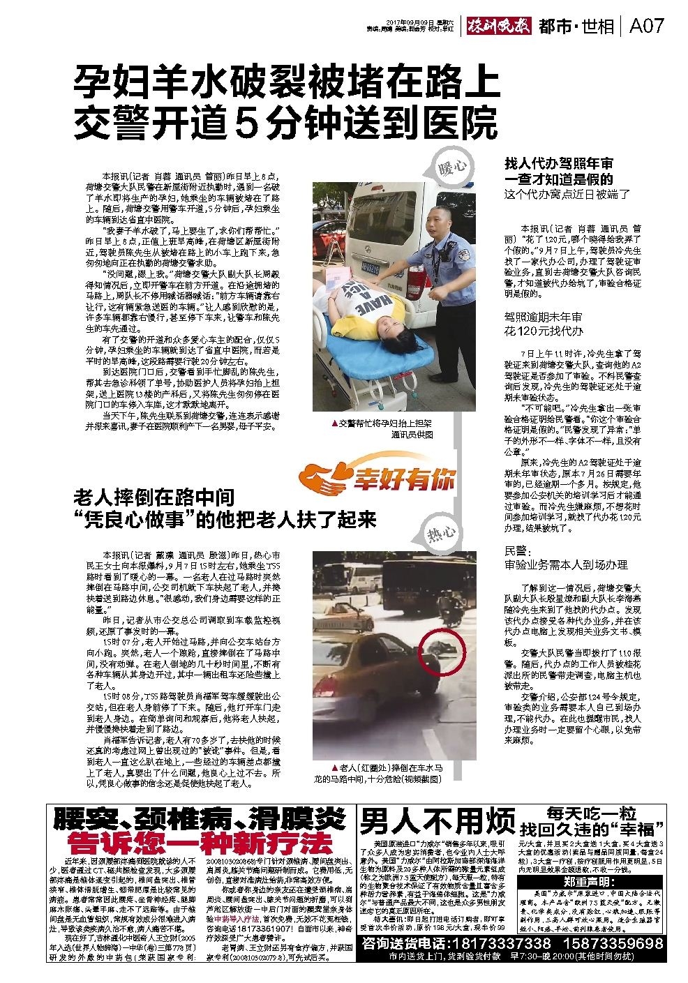 孕妇羊水破裂被堵在路上交警开道5分钟送到医院