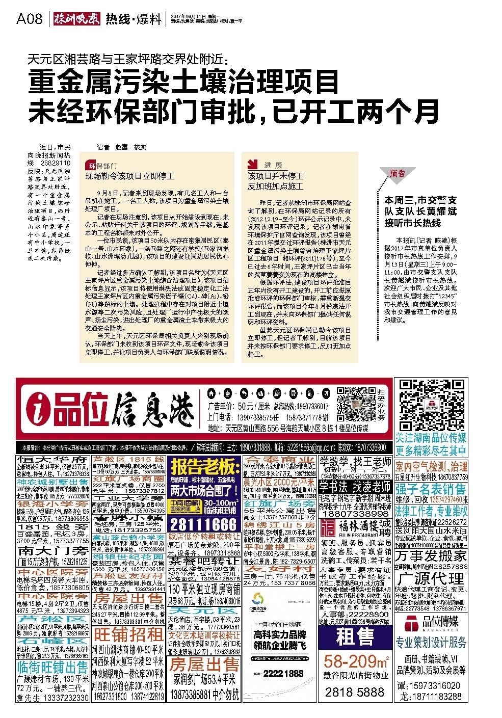重金属污染土壤治理项目 未经环保部门审批,已开工两个月