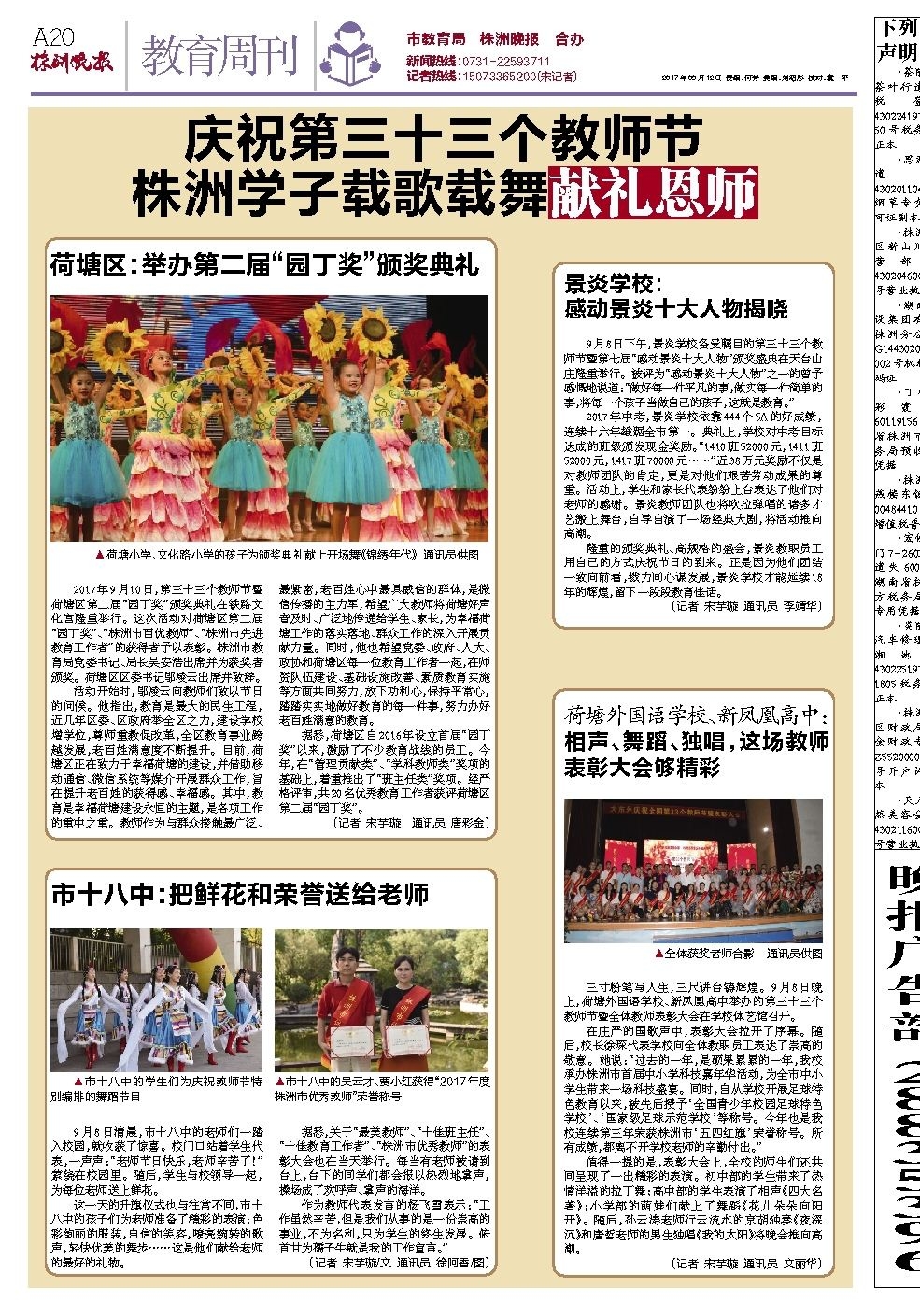 庆祝第三十三个教师节 株洲学子载歌载舞献礼恩师