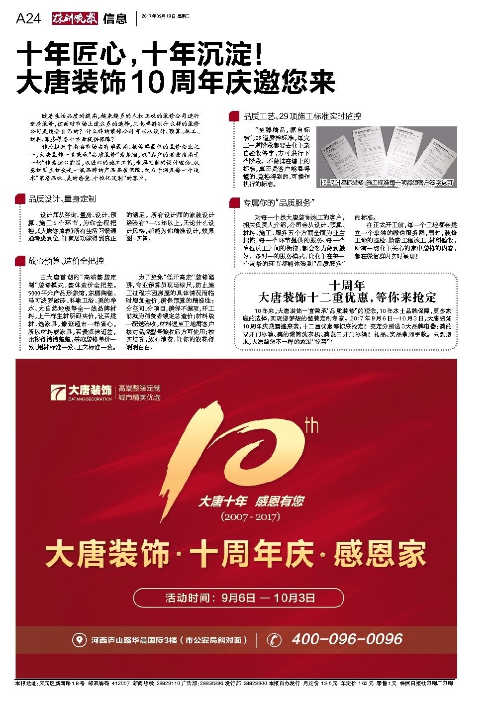 十年匠心,十年沉淀! 大唐装饰10周年庆邀您来