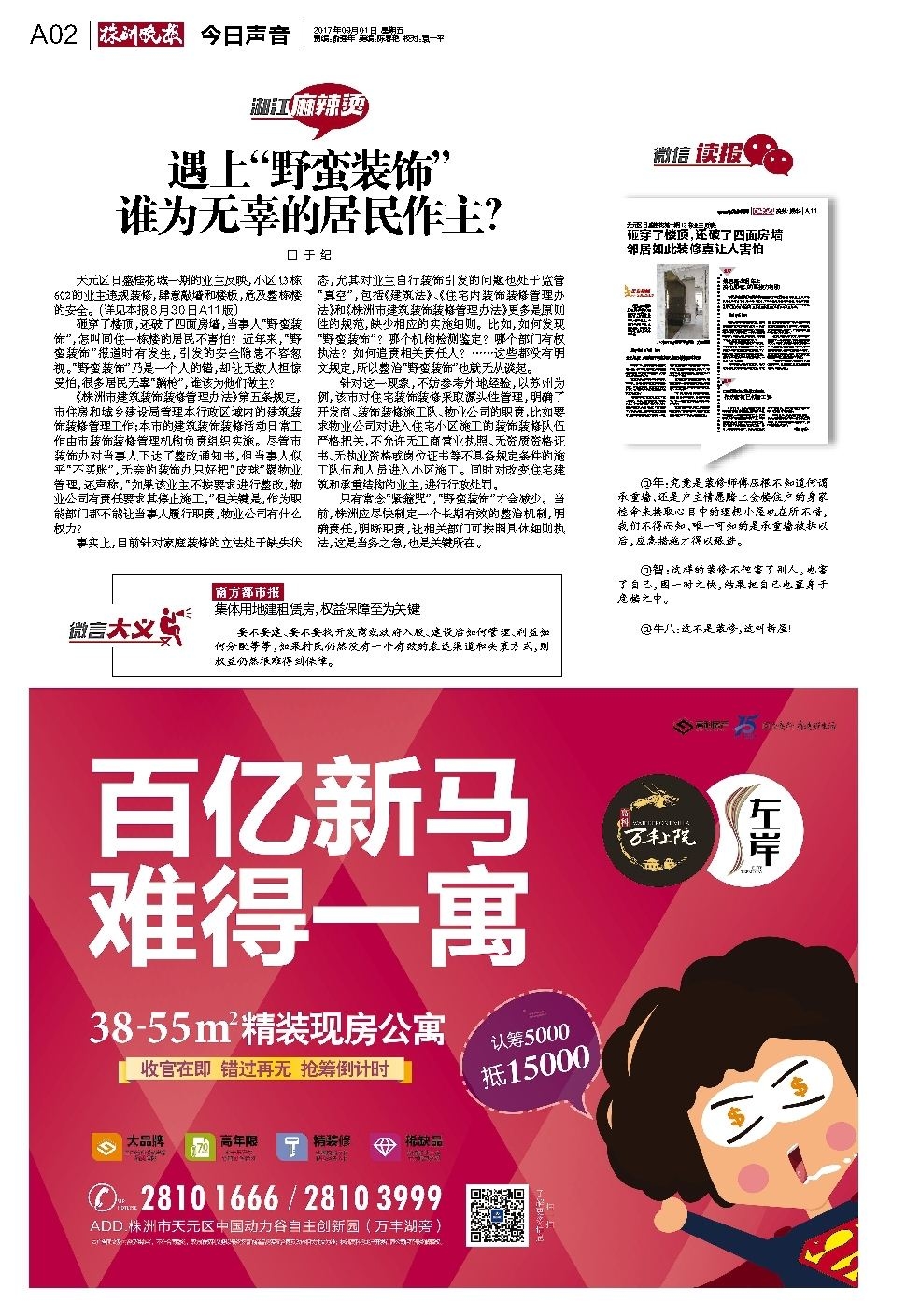 天元区日盛桂花城一期的业主反映,小区13栋602的业主违规装修,肆意敲墙和楼板,危及整栋楼的安全。(详见本报8月30日A11版)