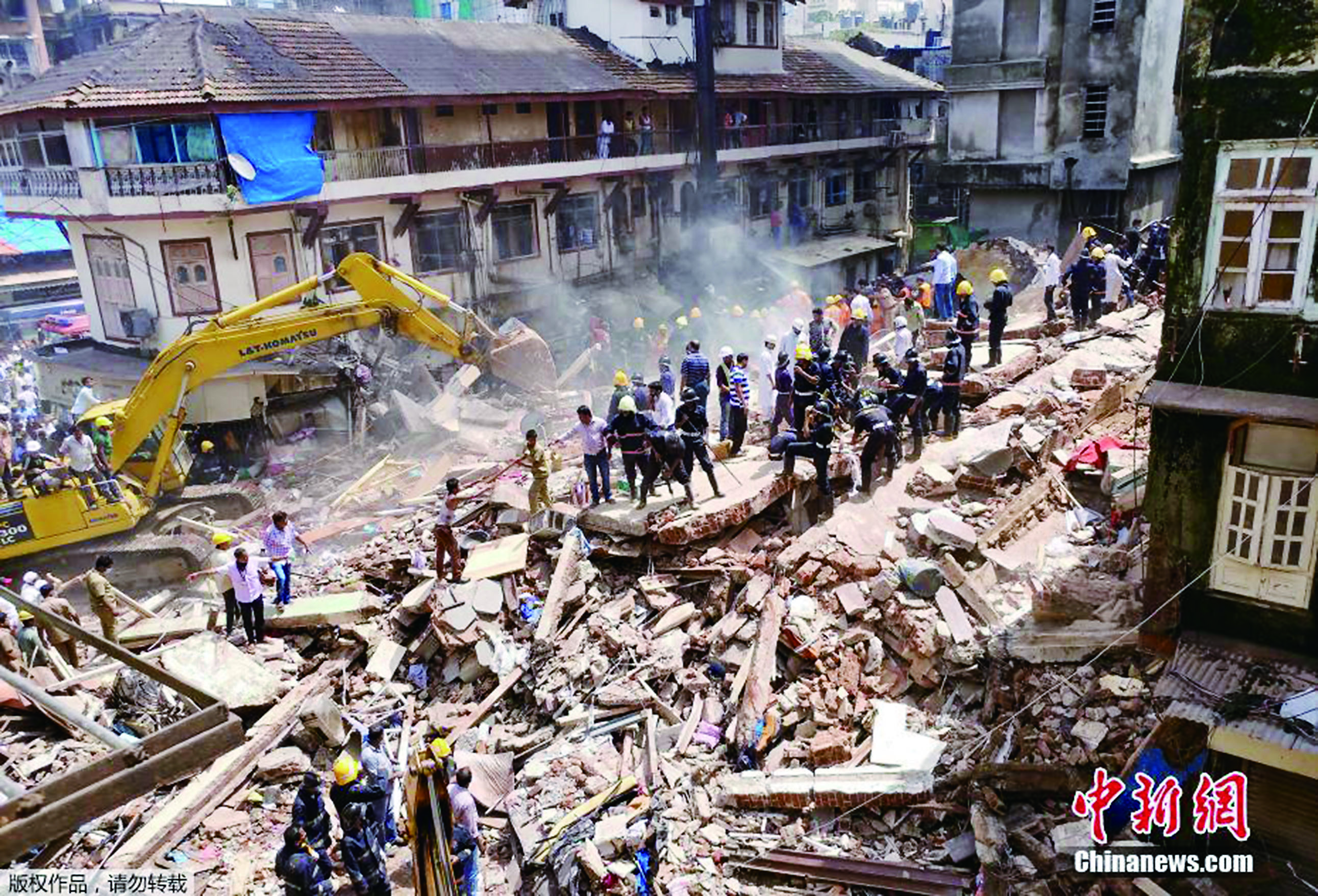 印度房屋倒塌事故时有发生,房屋老旧、天气恶劣、施工不规范等是主要原因。据不完全统计,仅2016年,孟买就有4栋建筑倒塌,共造成至少27人死亡。今年7月25日,孟买北部一居民楼垮塌,造成至少17人死亡。 (据新华社)
