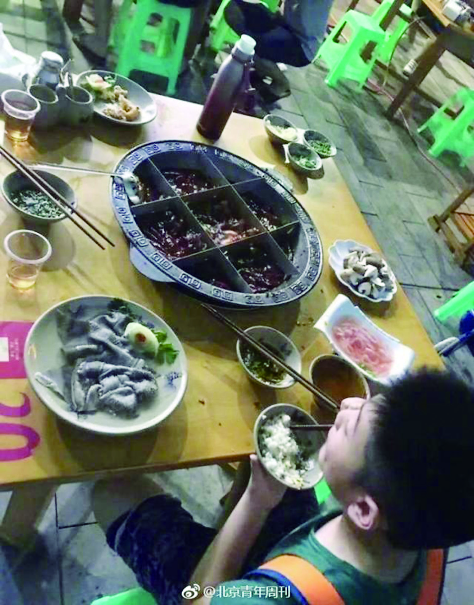 8岁娃独自吃火锅
