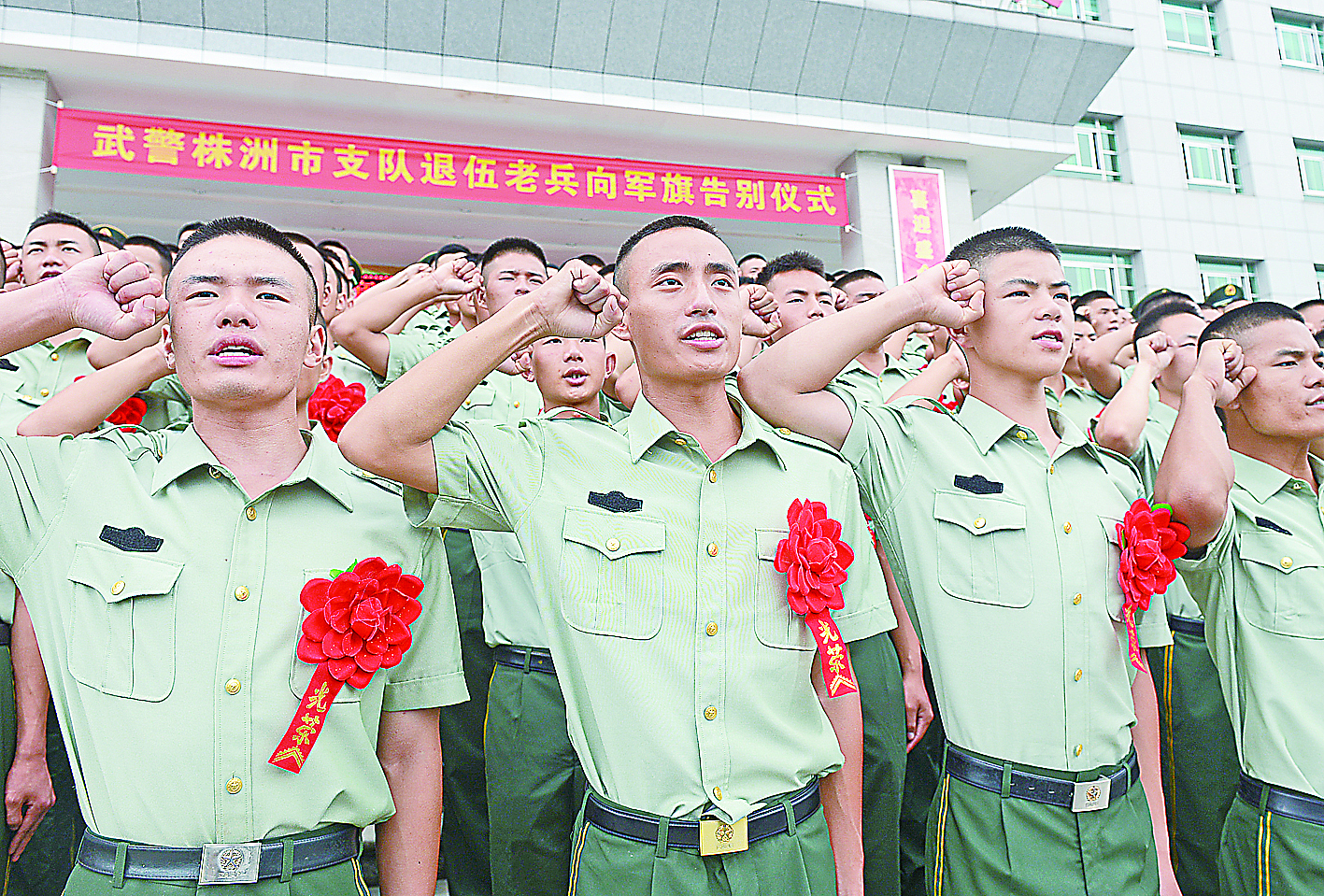 “全体肃立,奏军歌,迎军旗!”昨天上午,武警株洲支队举行2017年度退伍老兵向军旗告别仪式。面对鲜红的“八一”军旗,全体退役老兵向军旗庄严宣誓,敬上神圣的军礼。