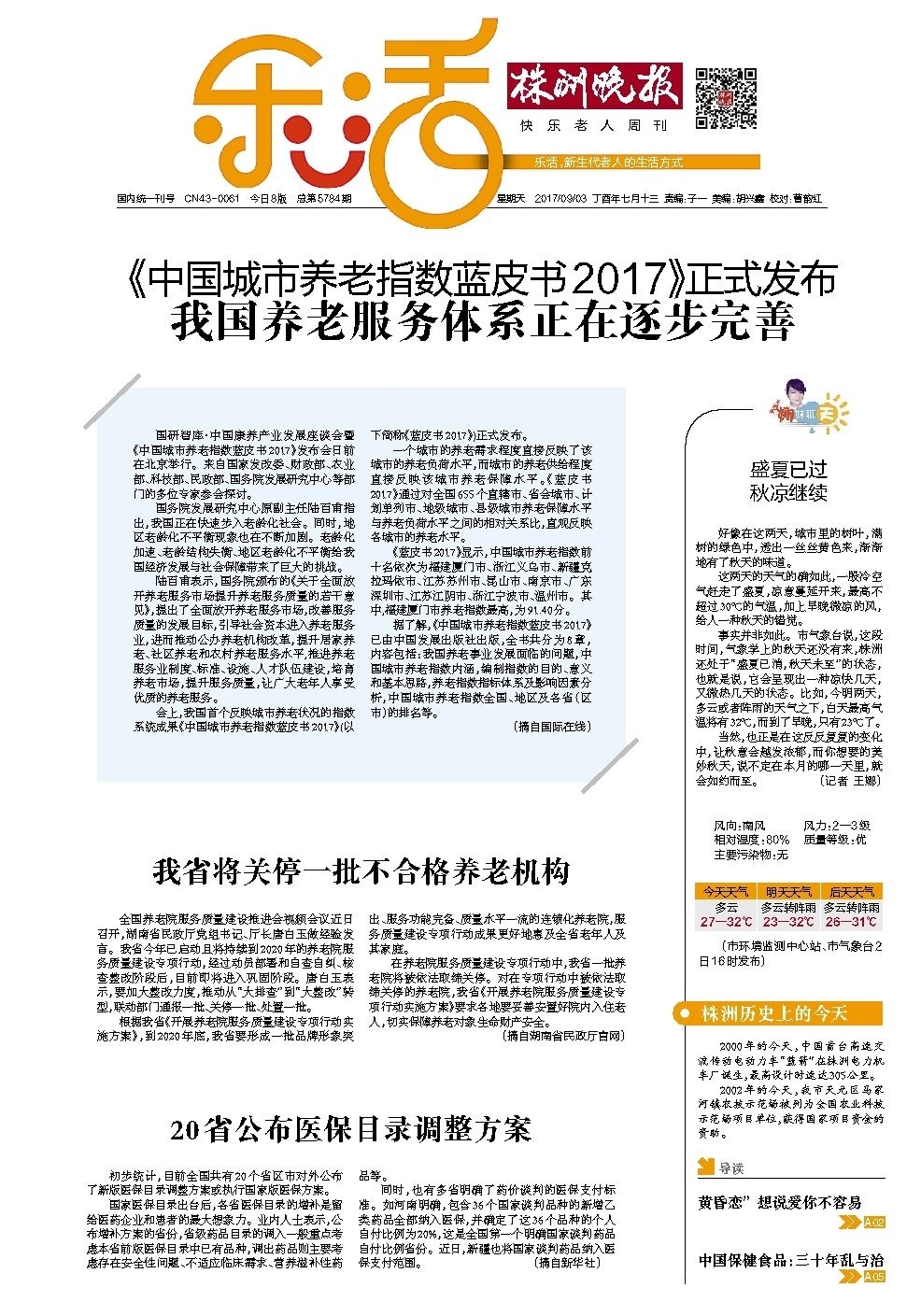 据了解,《中国城市养老指数蓝皮书2017》已由中国发展出版社出版,全书共分为8章,内容包括:我国养老事业发展面临的问题,中国城市养老指数内涵,编制指数的目的、意义和基本思路,养老指数指标体系及影响因素分析,中国城市养老指数全国、地区及各省(区市)的排名等。