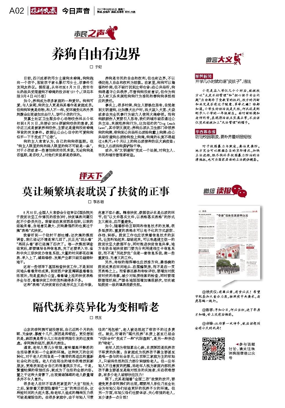 日前,四川成都的邓女士遛狗未牵绳,狗狗跑向一个孩子,招致孩子家长暴打邓女士,该事件引发网友热议。据报道,从年初至8月31日,我市市长热线共受理遛狗不牵绳的投诉有127个。(详见本报9月4日A05版)