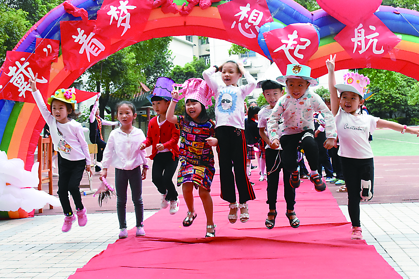 ▲开学第一天,何家坳小学举行了“帽子舞会” 通讯员 供图
