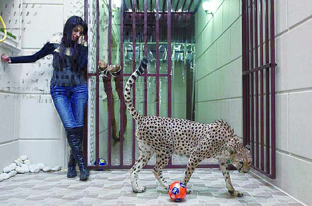 当地时间8月,在科威特,Shahad Al Jaber和家里的“宠物”猎豹合影留恋。今年32岁的Shahad Al Jaber养了它四年,并经常分享她自己的生活。