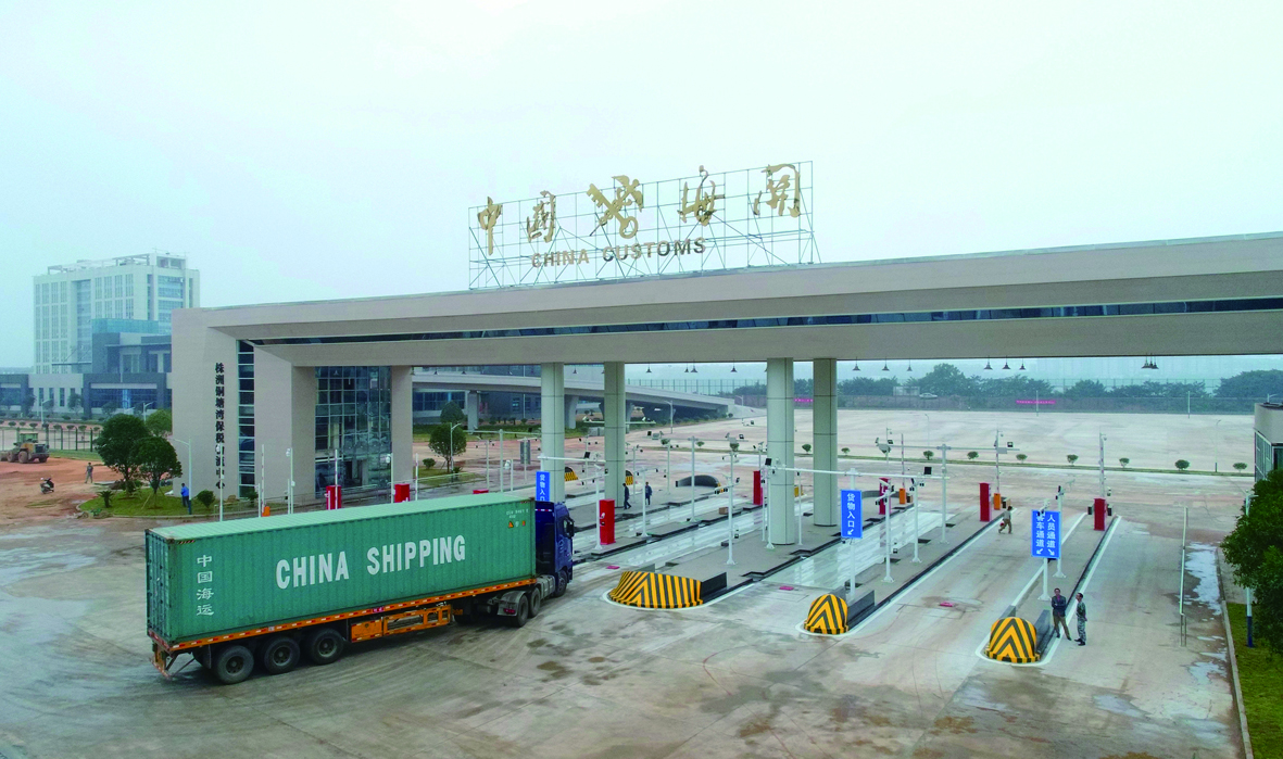 ▲株洲铜塘湾保税物流中心(B型)货物入关模拟现场