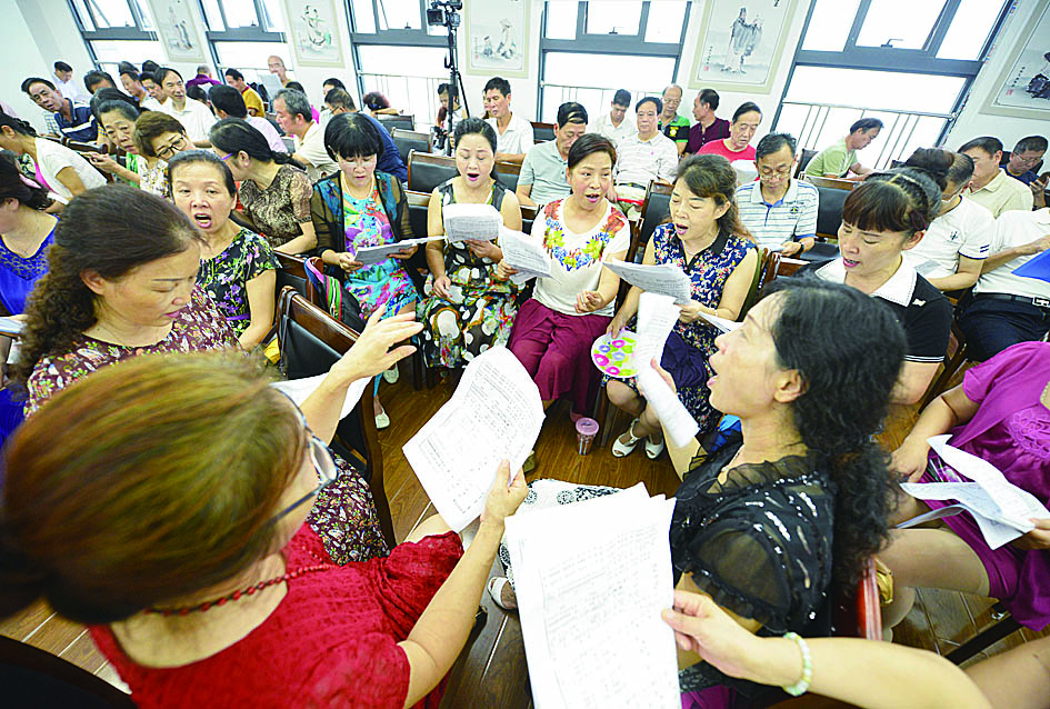 ▲9月5日,群星合唱团的成员们正在认真排练 记者 谢慧 摄