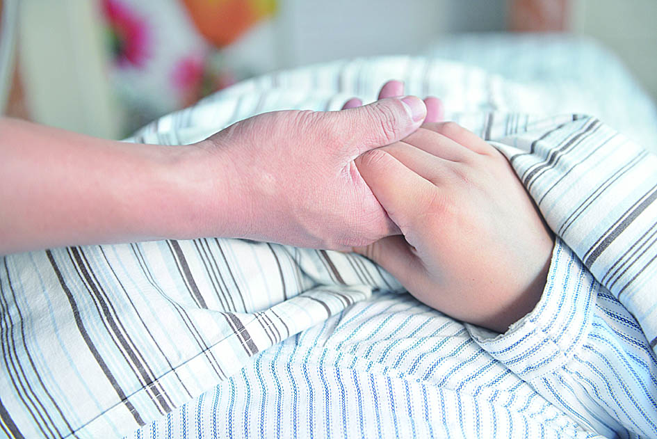 ▲2014年5月,某医院妇产科,宋先生握着即将进产房分娩的妻子的手(资料图) 记者 谢慧 摄