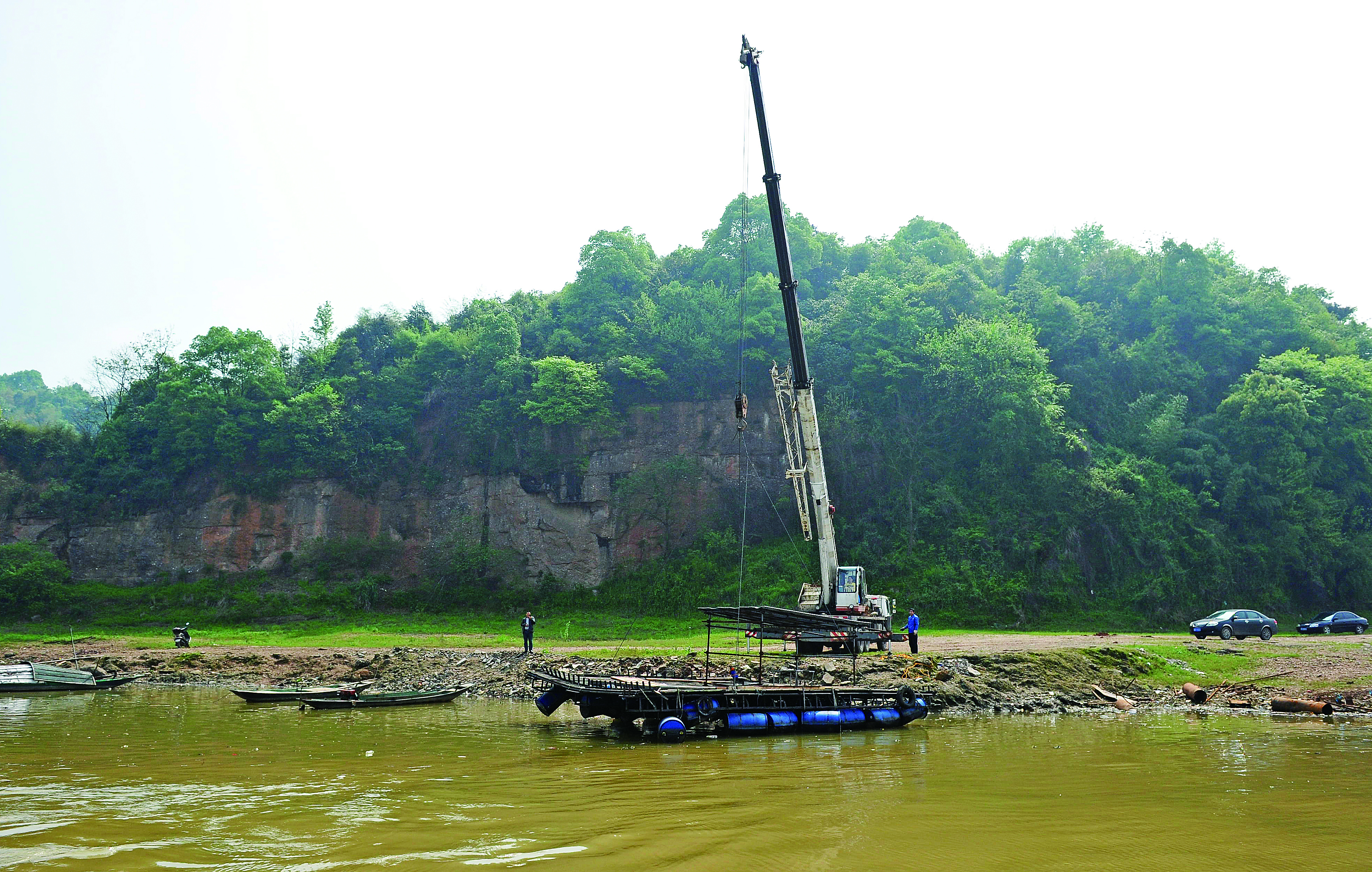 ▲湘江边一钓鱼平台被拆除 株洲日报社全媒体记者 谭清云 摄