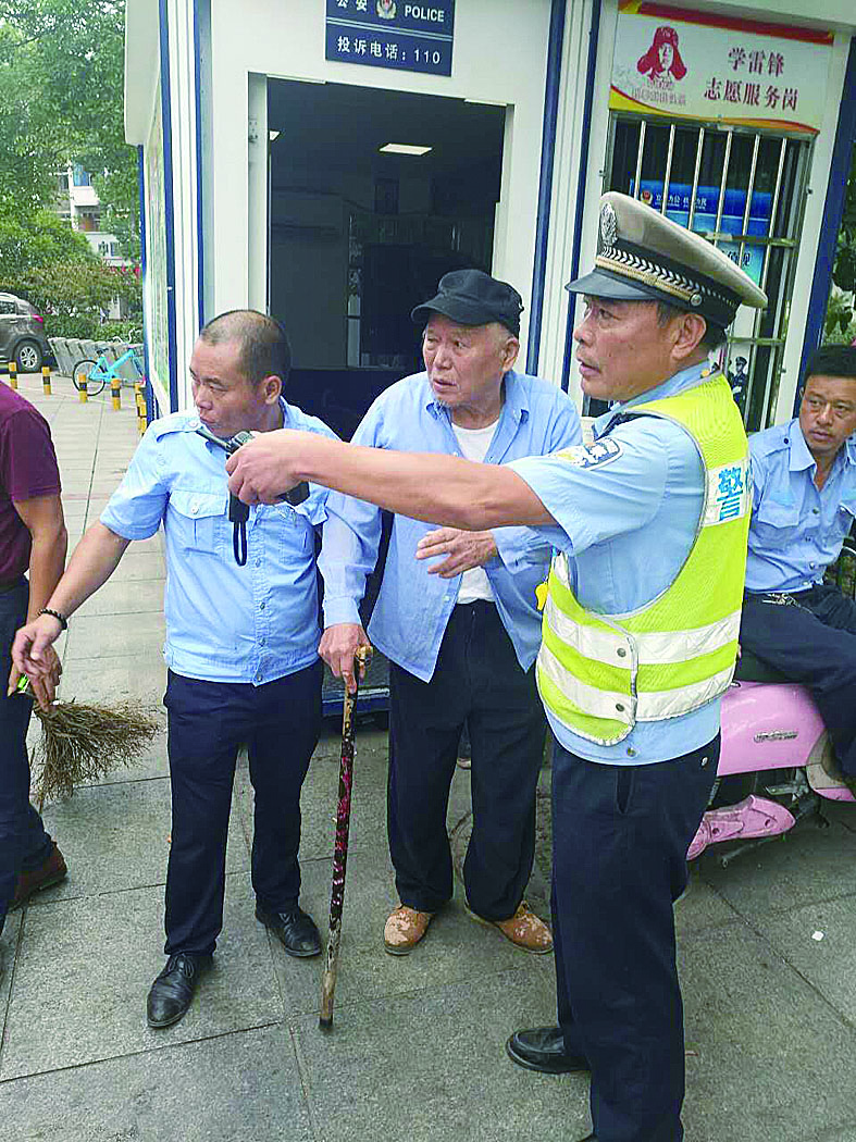 ▲石峰交警送迷路老人回家 通讯员 供图