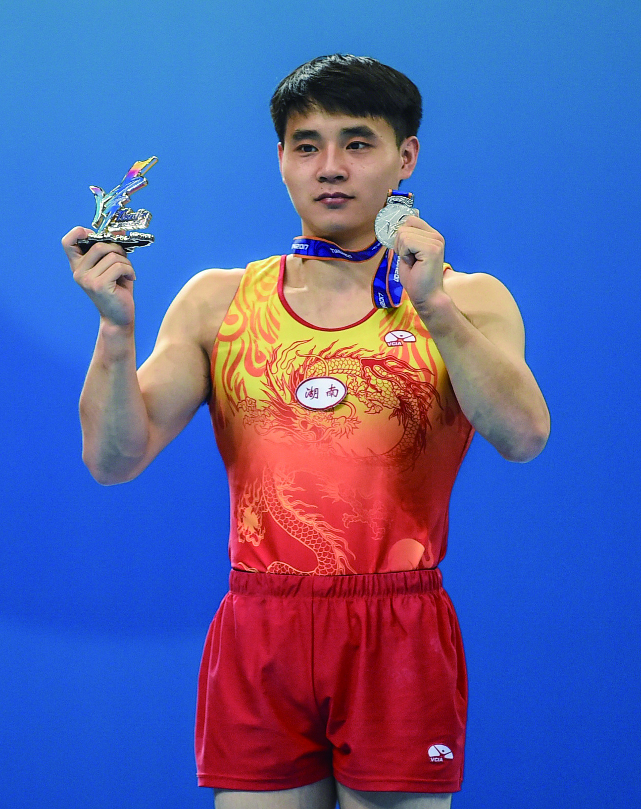 作为上一届全运会男子跳马冠军,实力突出的他备受关注。在决赛中,屈瑞阳第四个出场,两个动作的难度都比其他选手要高。遗憾的是,他的第一跳出现失误,最终两跳平均得分14.584分,差广西队黄明淇0.033分,与冠军失之交臂。