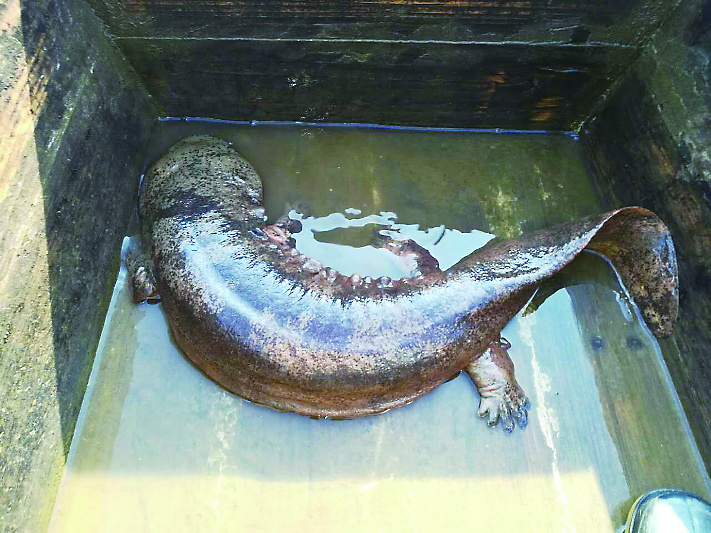 不过,当看清楚竹笼里的东西时,他吓了一大跳。笼子里除了一些小鱼小虾外,还有一条他从来没有见过的“怪鱼”,“长得有点像大鲶鱼,但有四条腿。”