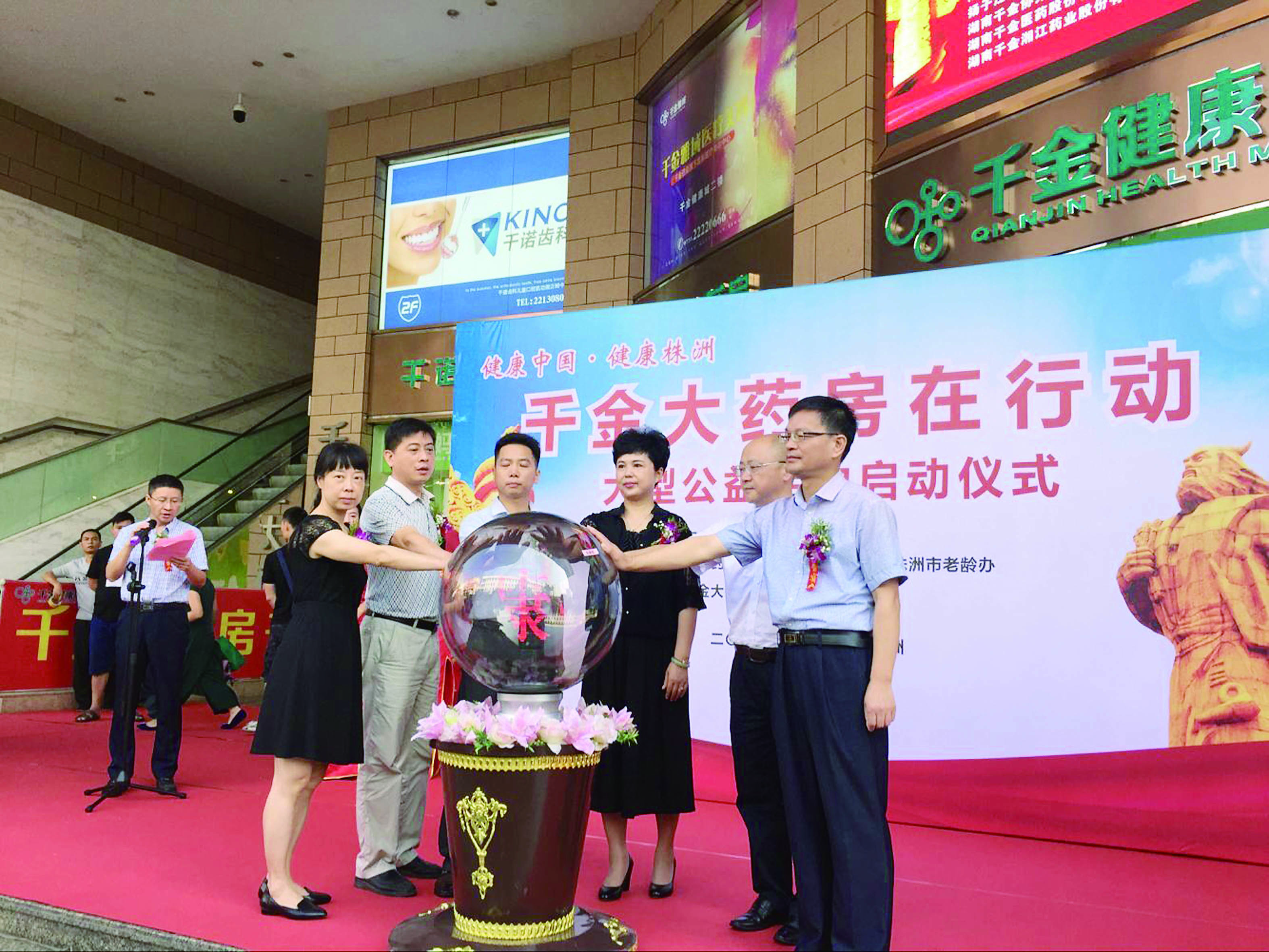 9月8日上午,由株洲市总工会、株洲市妇联、株洲市老龄办、株洲市食药监局联合组织,湖南千金大药房连锁有限公司承办的“健康中国·健康株洲,千金大药房在行动”大型公益活动的启动仪式在千金健康城举行。