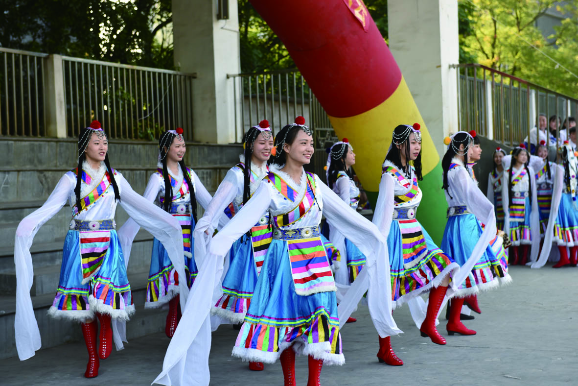 ▲市十八中的学生们为庆祝教师节特别编排的舞蹈节目