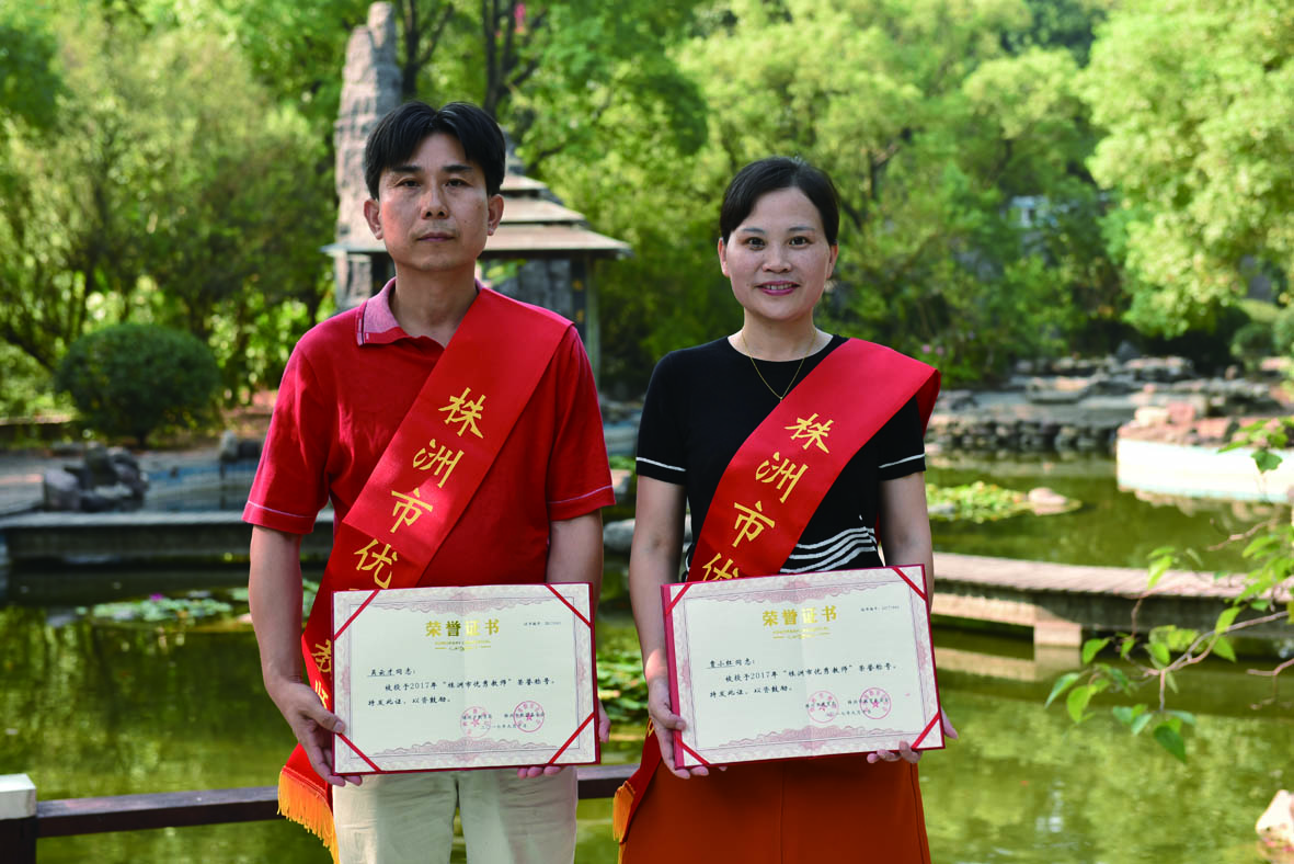 ▲市十八中的吴云才、贾小红获得“2017年度株洲市优秀教师”荣誉称号