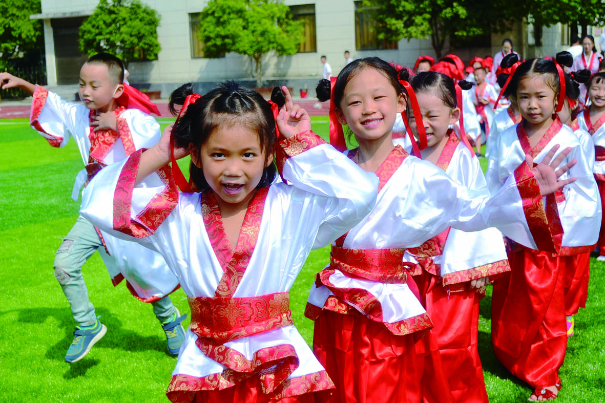 9月8日上午,株洲市外国语石峰学校的操场上,一个个穿着汉服的一年级新生们,在老师的带领下排着整齐的队伍走向舞台中央。原来,这是该校正在举行2017年下学期“开笔启蒙,慧悦人生”小学开学典礼。