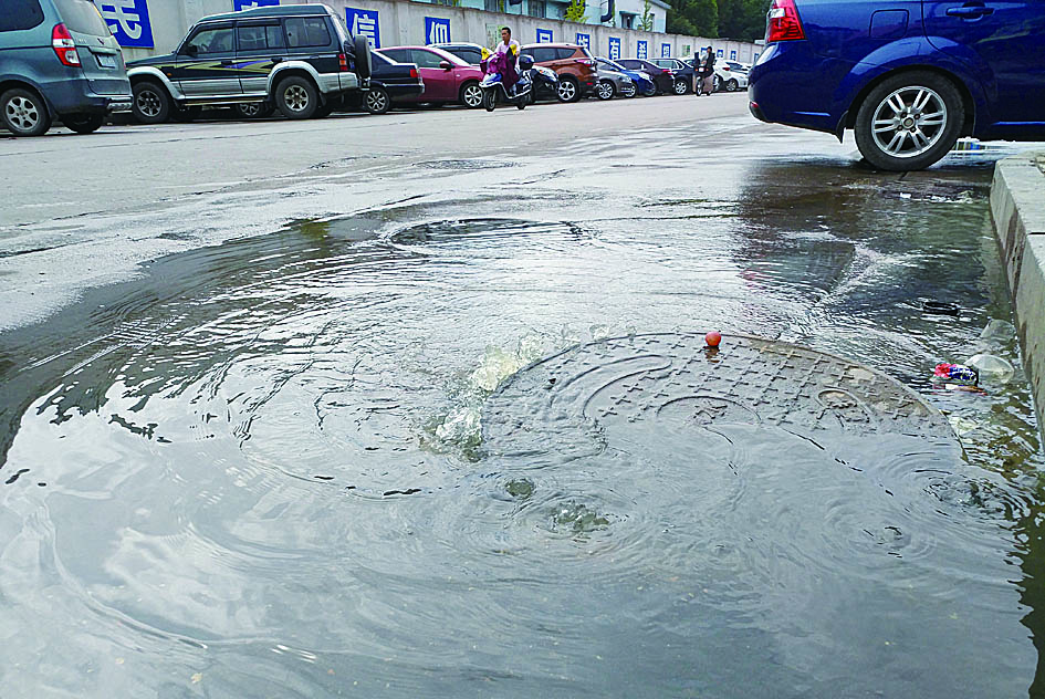 昨日上午,记者在幸福村小区外的马路上看到,有一个井盖正在不停冒水,而且气味难闻。