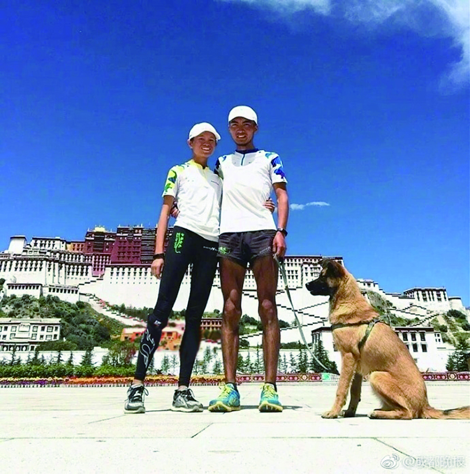 后来到了云南,中华田园犬“马拉”(名字取自马拉松)加入了行程。“我们清空了大部分的行李,在婴儿车里给马拉腾出了一个座位。它一般都是坐在婴儿车里,我们推着它跑。”所以,幸福的“马拉”基本是坐在车里到拉萨的。