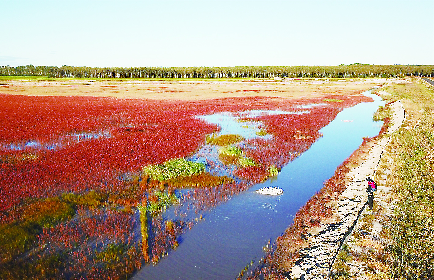 9月12日拍摄的莫莫格国家级自然保护区湿地秋景。莫莫格国家级自然保护区是国家AAAA级景区,位于吉林省白城市镇赉县,这里是白鹤、丹顶鹤、东方白鹳、黑鹳等多种珍稀野生鸟类的迁徙停歇地和繁殖地。