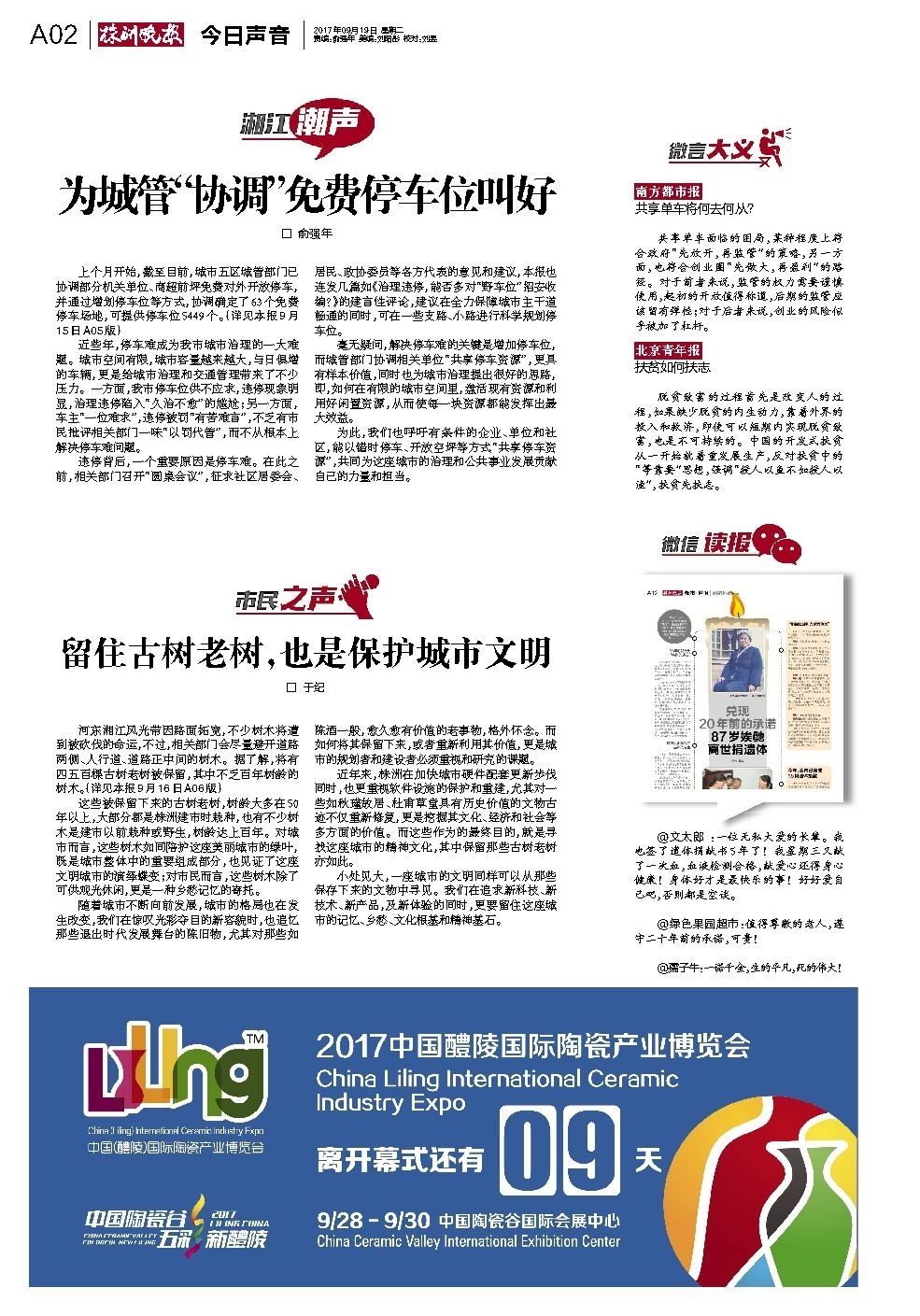 2017年09月19日《株洲晚报》