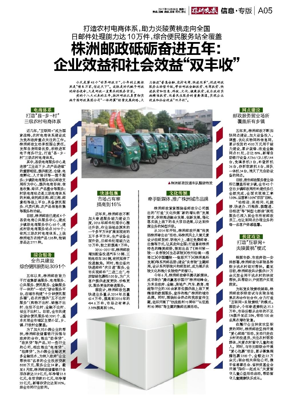 株洲邮政砥砺奋进五年: 企业效益和社会效益“双丰收”
