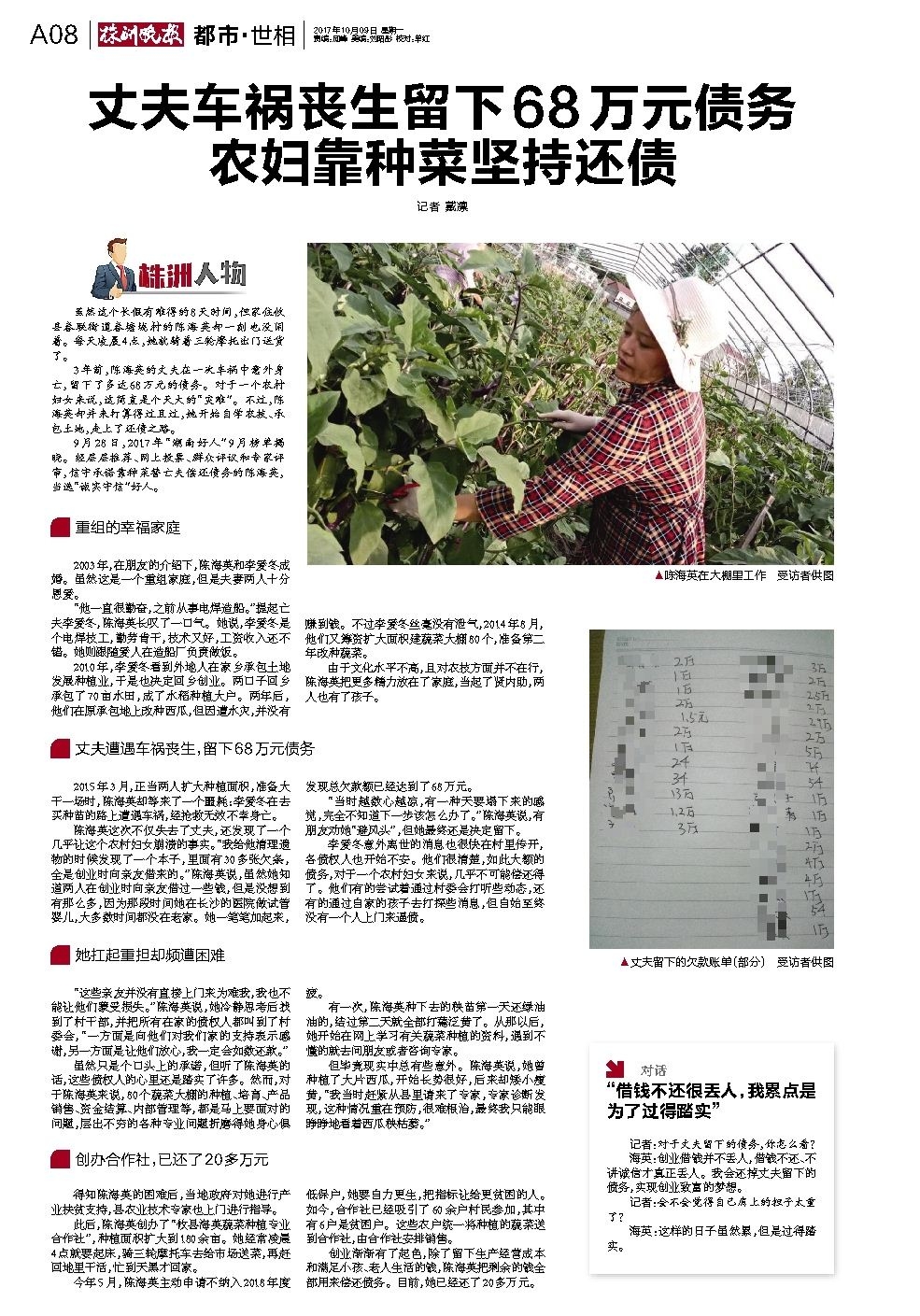 丈夫车祸丧生留下68万元债务 农妇靠种菜坚持还债