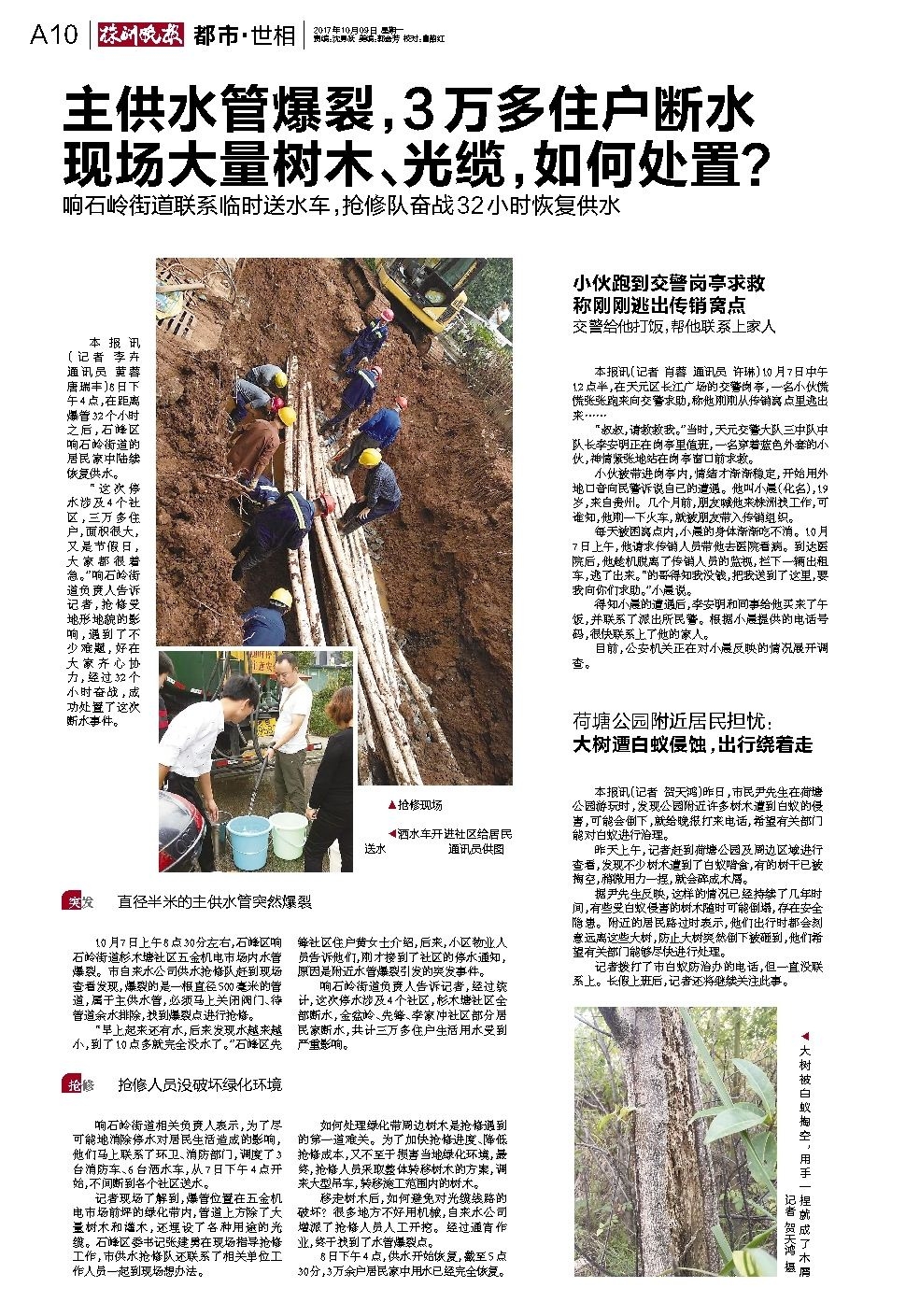 主供水管爆裂,3万多住户断水现场大量树木、光缆,如何处置?