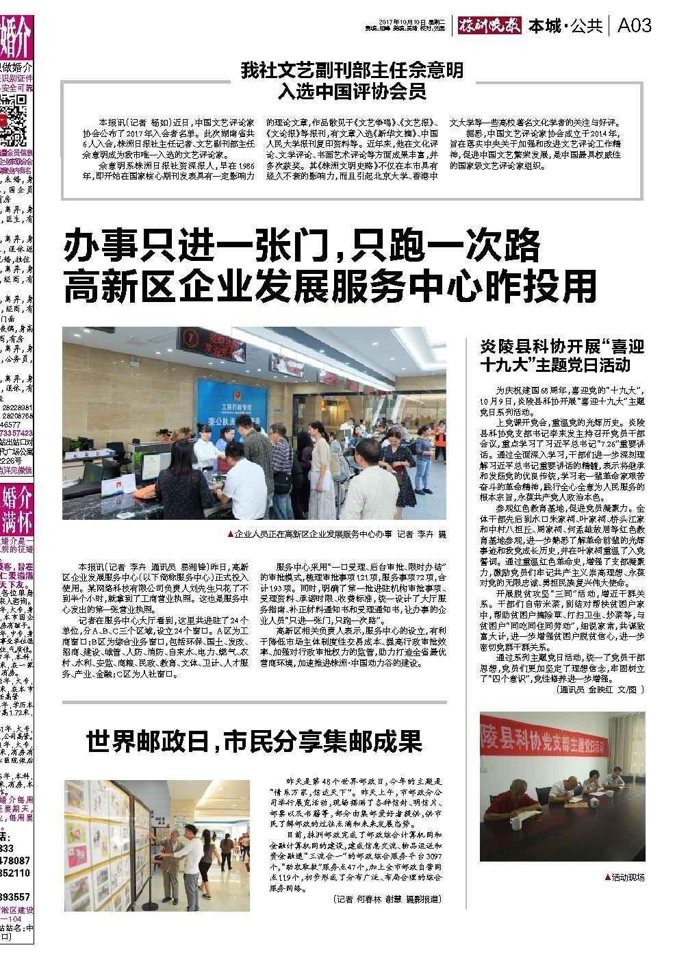 办事只进一张门,只跑一次路 高新区企业发展服务中心昨投用
