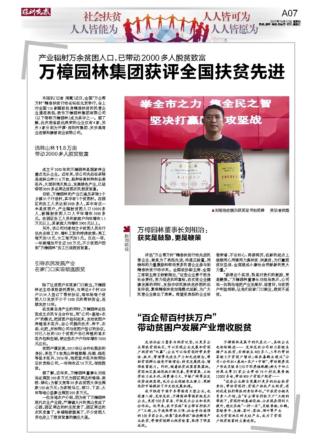 万樟园林集团获评全国扶贫先进