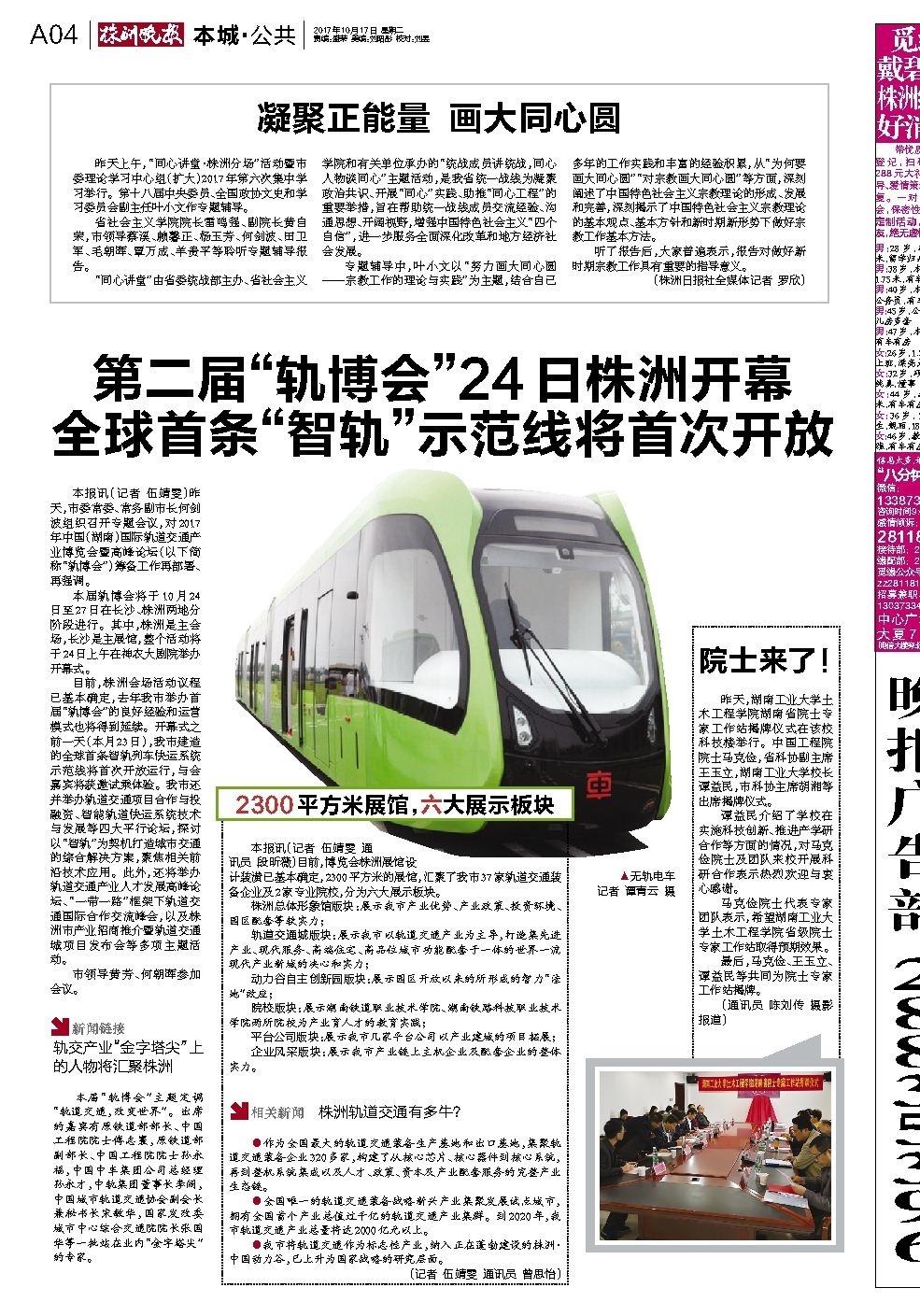 第二届“轨博会”24日株洲开幕 全球首条“智轨”示范线将首次开放