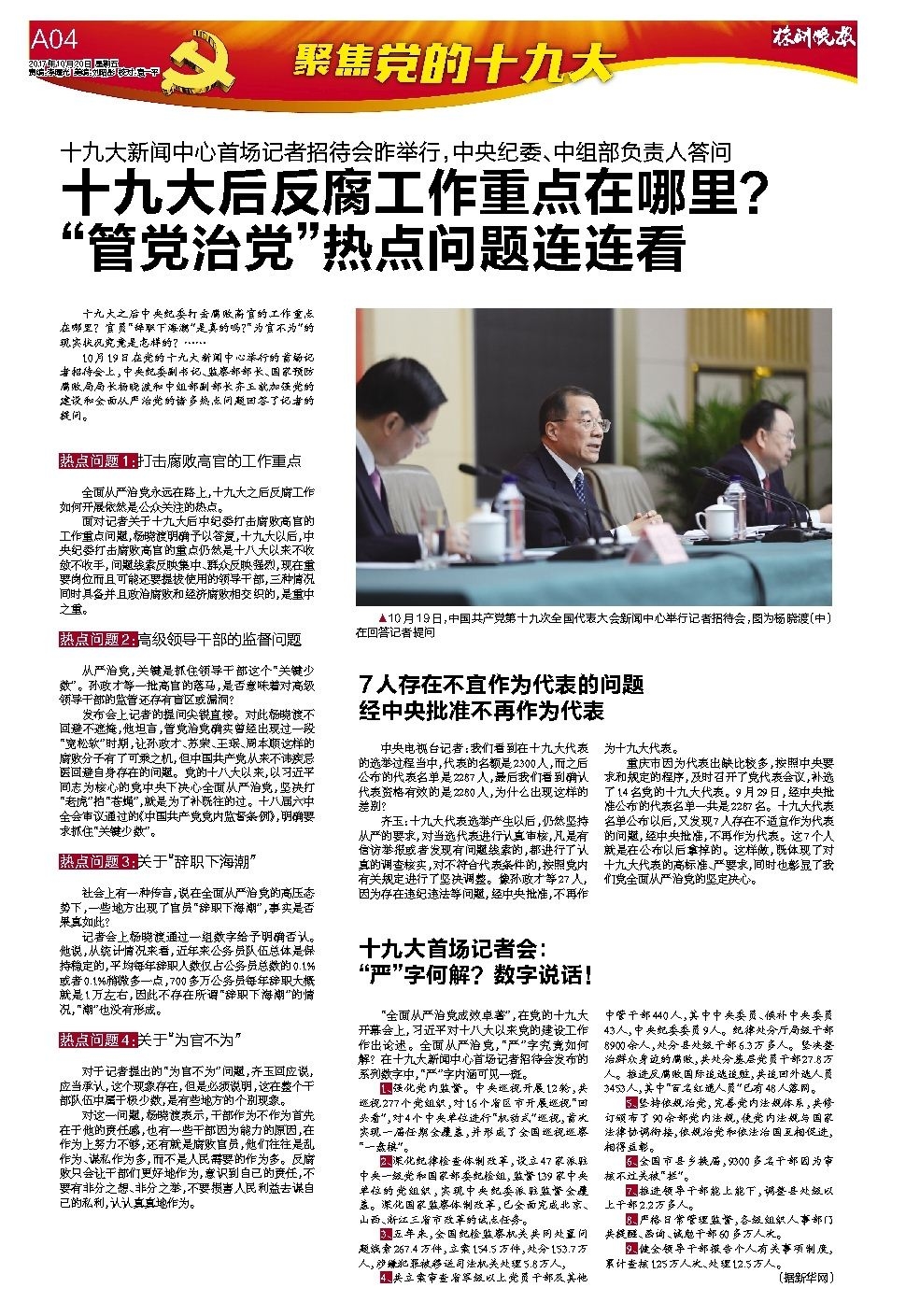 十九大首场记者会: “严”字何解?数字说话!