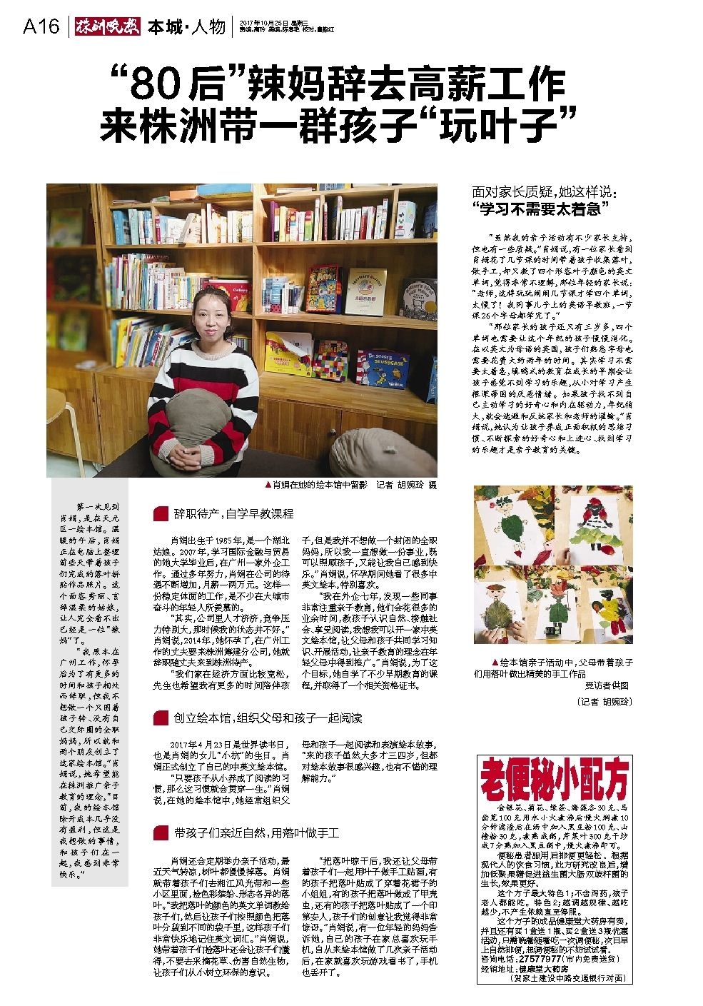 “80后”辣妈辞去高薪工作来株洲带一群孩子“玩叶子”