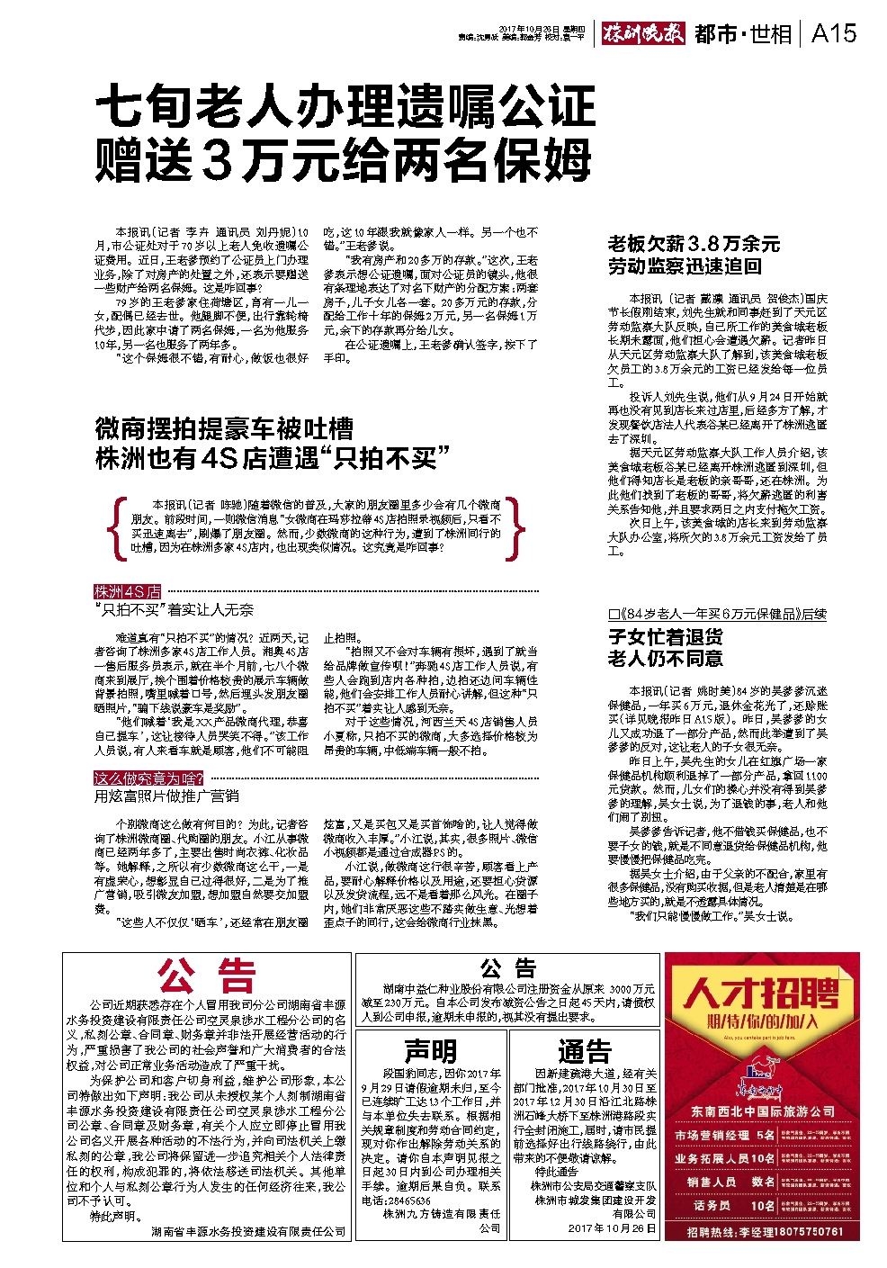 2017年10月26日《株洲晚报》