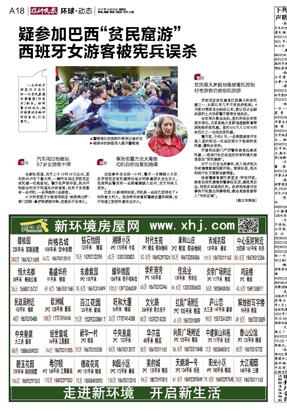 疑参加巴西“贫民窟游” 西班牙女游客被宪兵误杀
