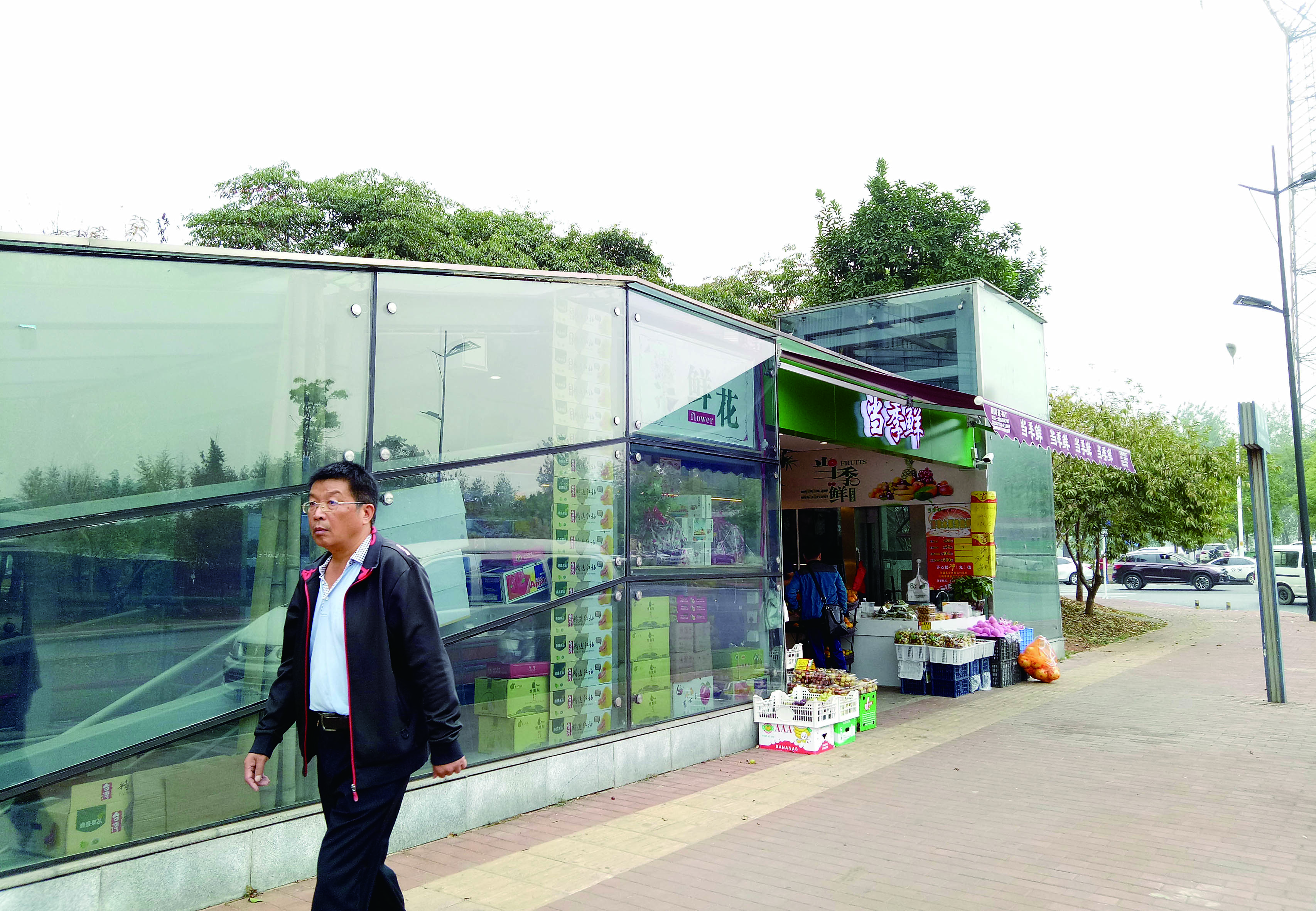 ▲地下通道的出入口开了个水果店 记者 谢慧 摄