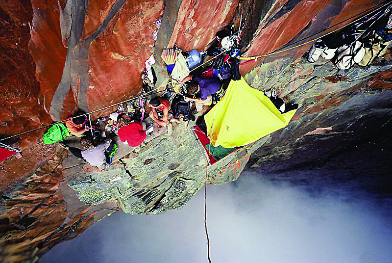 詹姆斯·皮尔森来自英国,他的妻子卡洛琳·奇瓦尔迪尼来自留尼旺岛。在二人的新书《攀越:全球最惊险攀岩地》中,他们详细描述了自己最爱的登山地点。其中在委内瑞拉天使瀑布的崖壁上,夫妻俩就在岩壁上安营扎寨。