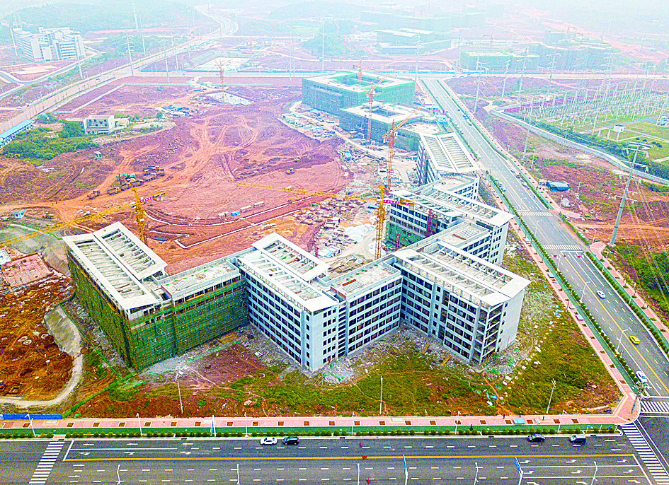 ▲昨天,湖南(株洲)职教科技园东部,建设中的市职工大学等职校的新校区