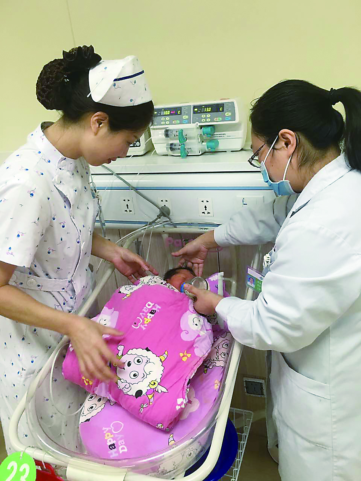 ▲医护人员在照顾弃婴 记者 贺天鸿 摄