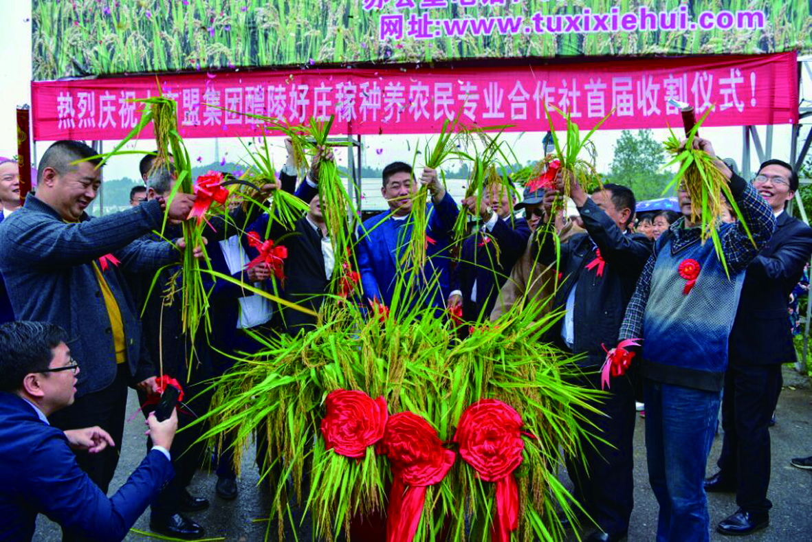 ▲首届富硒稻谷收割仪式现场 通讯员 李茂春 摄