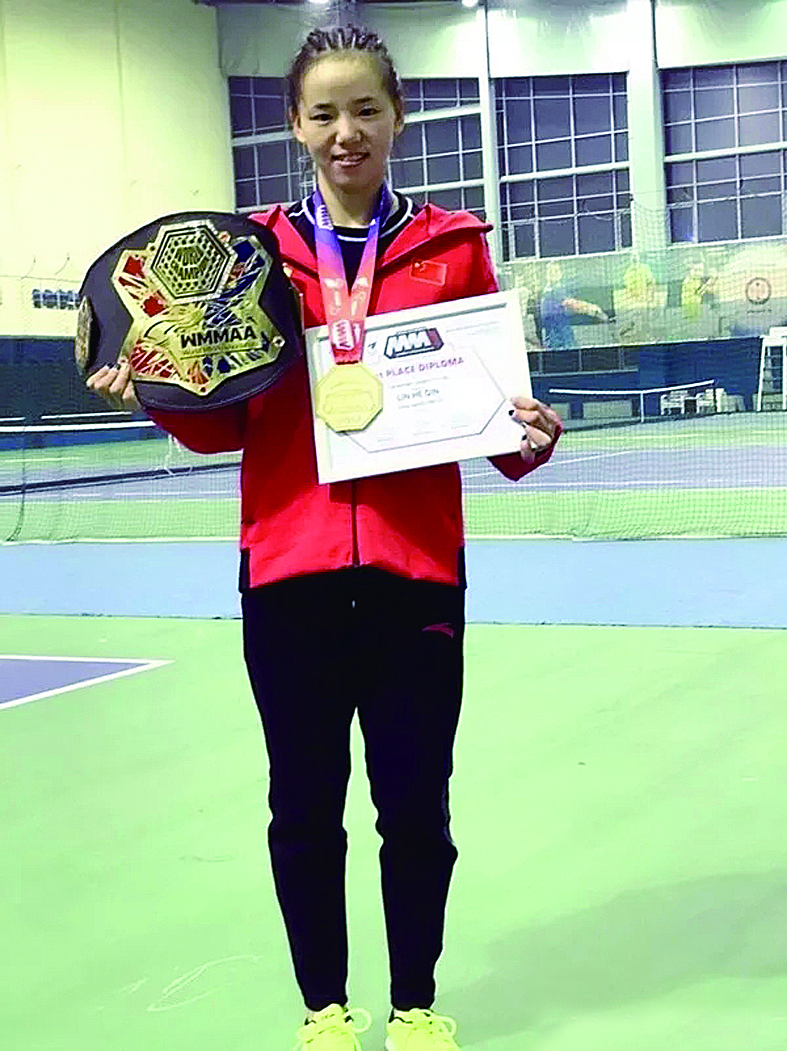 ▲90后温州姑娘林荷琴国庆期间在哈萨克斯坦拿下了中国历史上首枚世界综合格斗(MMA)锦标赛金牌(女子52.2公斤级)。