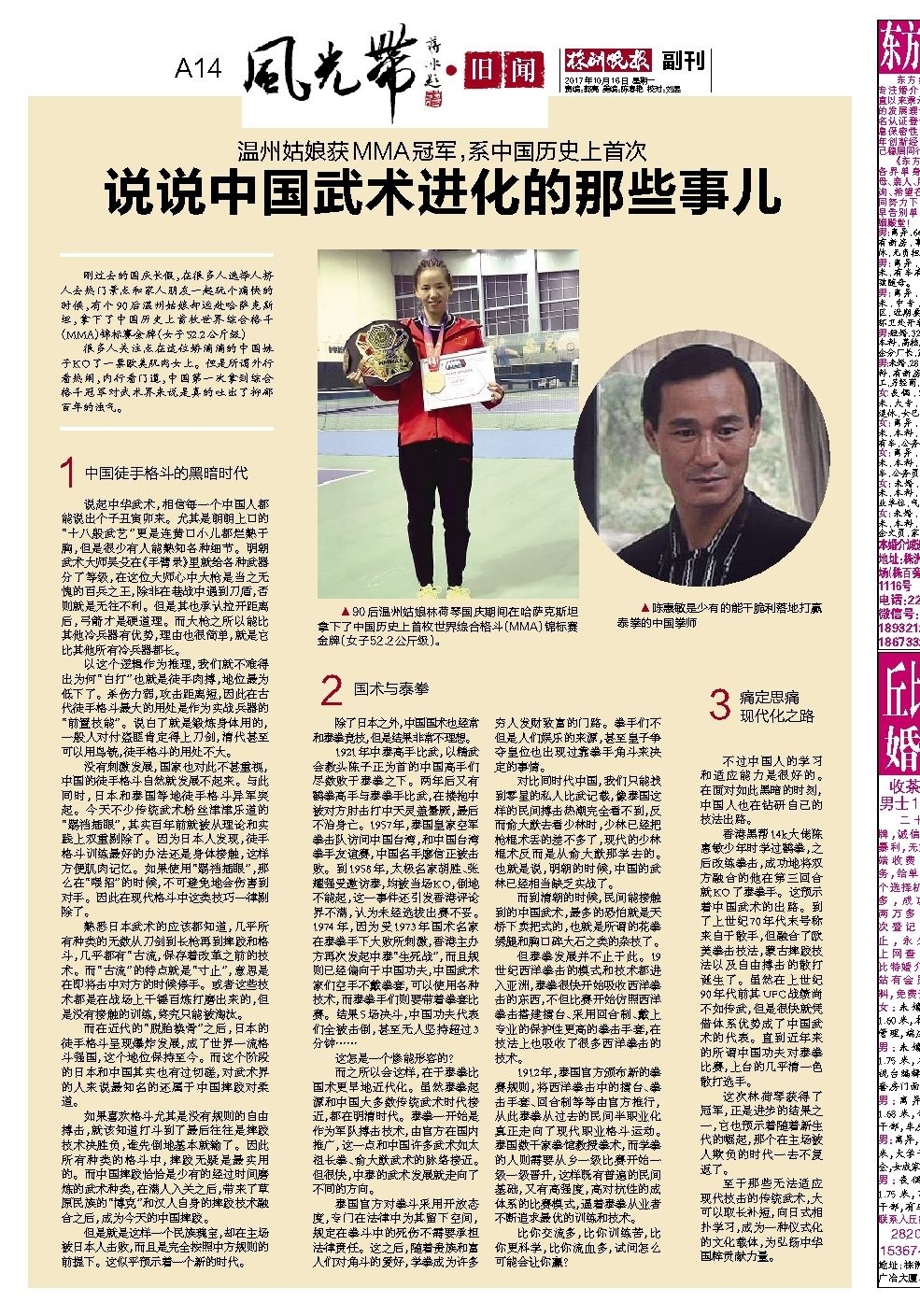 刚过去的国庆长假,在很多人选择人挤人去热门景点和家人朋友一起玩个痛快的时候,有个90后温州姑娘却远赴哈萨克斯坦,拿下了中国历史上首枚世界综合格斗(MMA)锦标赛金牌(女子52.2公斤级)