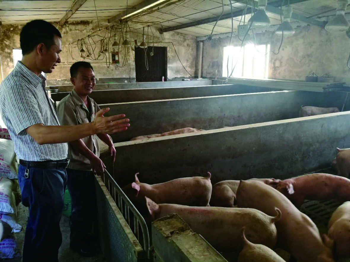 ▲龙秋华(左一)走出了一条独具特色的“生猪扶贫”好路子