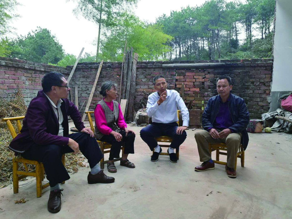 ▲杨军(右二)经常去看望贫困群众,给他们力所能及的帮助 通讯员供图