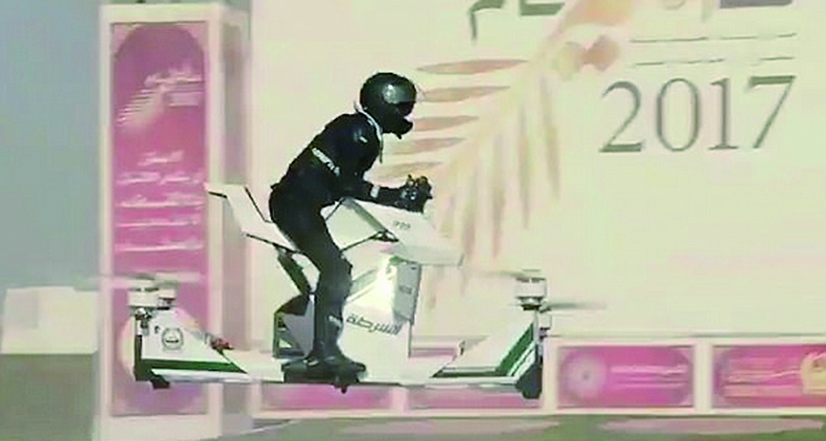 据英国《每日邮报》报道,近日,阿联酋迪拜警方引进了一款单座飞行摩托,这辆飞行摩托能够飞到16英尺(约5米)高的空中,时速可达43英里(约70千米)。警方在停车场试飞了该摩托,并摄像记录了全过程。