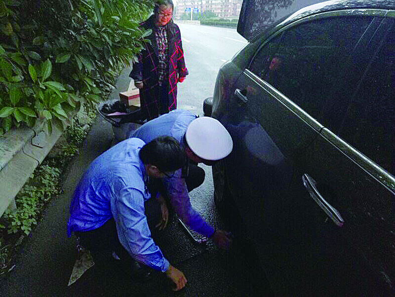 交警冒雨当“修理工”